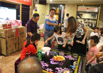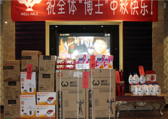 中秋到,祝團圓,2015年9月24日晚,我集團部分直屬部門相聚一起慶祝傳統(tǒng)中秋佳節(jié),并進行了閩南特色文化活動——博餅。 晚會開始進行的是宴會,會上集團領(lǐng)導(dǎo)親自敬酒,祝大家節(jié)日快樂,身體健康,大家積極回應(yīng),其樂融融。酒足飯飽之后,開始重頭戲----擲骰子博餅競逐「狀元」銜頭,每圍按擲得「狀元」、「榜眼」、「探花」、「四進」、「舉人」及「秀才」,對應(yīng)豐富獎品。全場歡聲笑語,氣氛熱烈。