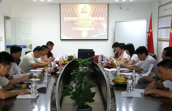 為慶祝中國共產黨成立八十八周年,我集團黨支部召開了“七·一”黨員大會。 集團黨支部書記吳立新對支部的發(fā)展歷程、支部的工作及黨員的發(fā)展情況做了介紹,開展學習黨支部三會一課及胡錦濤總書記的“科學發(fā)展觀”。 大會上,支部委員會授予:曾君海(化工廠)、陳國華(二廠)同志2008—2009年度“優(yōu)秀共產黨員”稱號! 華寶黨支部全體黨員參加會議 集團黨支部書記吳立新發(fā)表講話 |