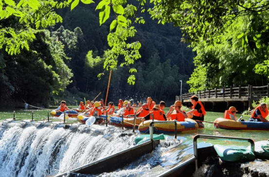 #03 云龍谷漂流 酒店用餐結(jié)束后,一行人前往云龍谷漂流。云龍谷景區(qū)距離德化縣城17公里。該漂流河段系晉江水源頭之一,起點(diǎn)為國(guó)寶云龍谷景區(qū)的大門(mén)口,終點(diǎn)為梨花島,全程3.8公里,落差近50米,急流險(xiǎn)灘30多處,漂流時(shí)間約2小時(shí)。