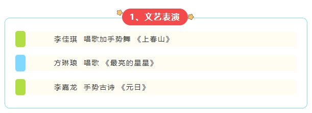 孩子們認真涂色,用色彩裝扮他們幸福的童年。 活動正式開始 三位小朋友進行了文藝表演 大膽地展示自己的風采 為“六一”兒童節助興