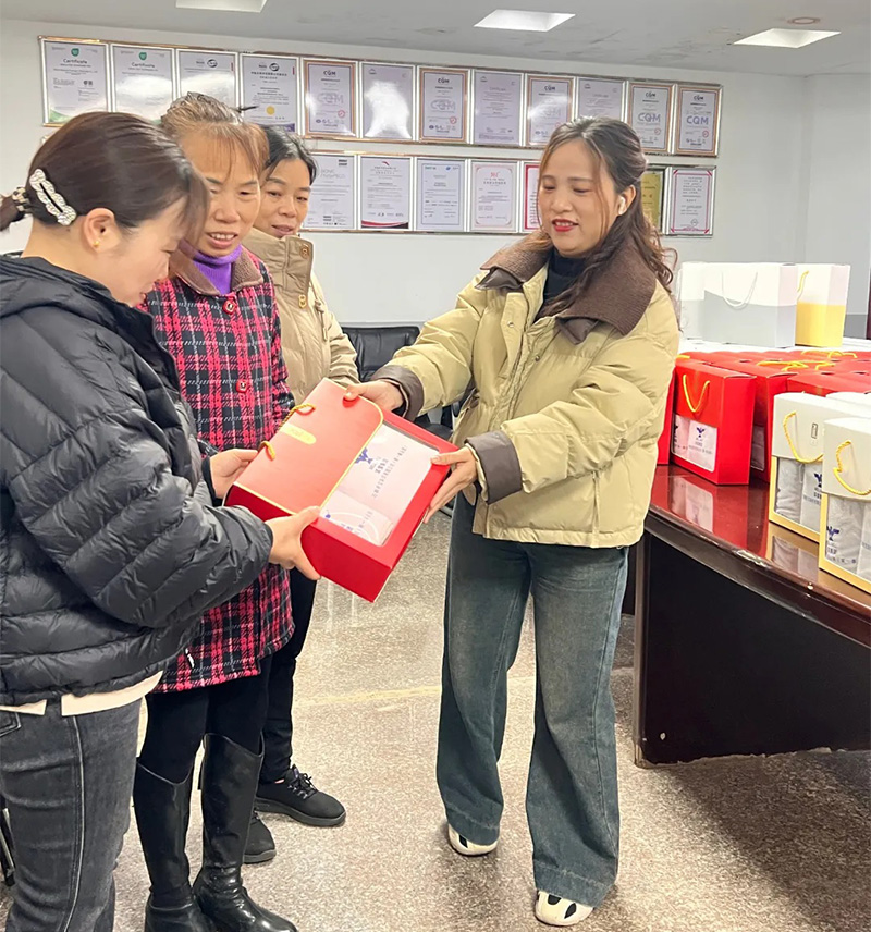 三月春光燦漫,暖陽(yáng)傾灑,新材料的女職工們圍爐煮茶,品嘗美食,制作手工扇子,在茶香裊裊中放松身心,分享生活的趣事。 一廠則為女職工貼心地準(zhǔn)備了洗護(hù)禮盒,表達(dá)對(duì)女職工的關(guān)懷和問(wèn)候。