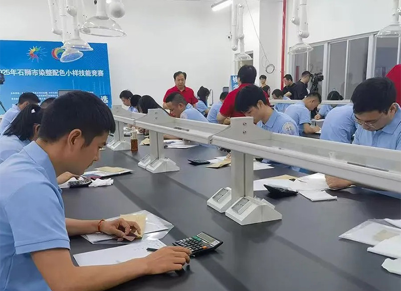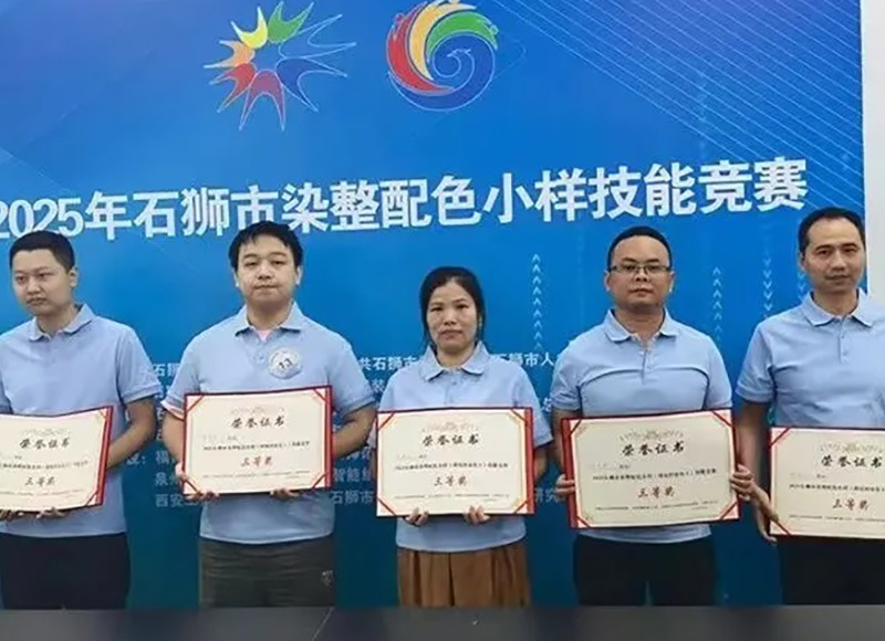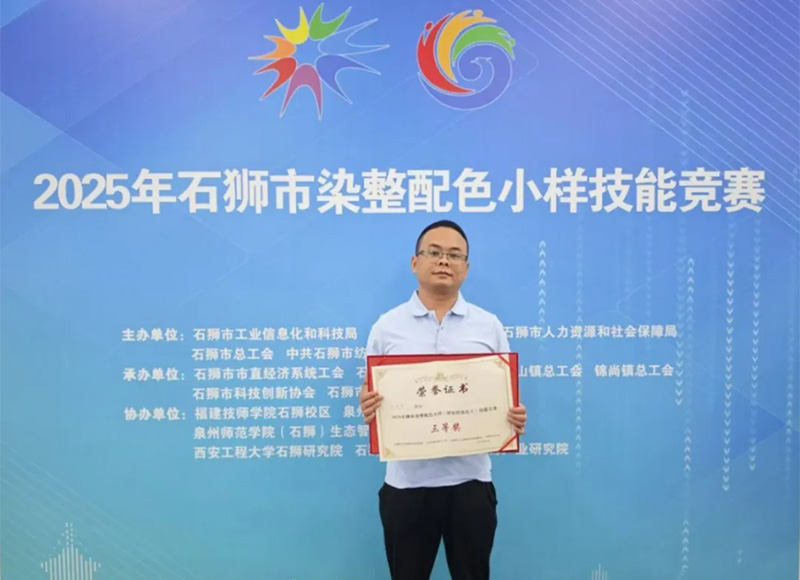 5月25日,2025年石獅市染整配色小樣(紡織染色工)技能競賽在福建技師學(xué)院寶蓋校區(qū)舉行。該競賽是石獅紡織服裝行業(yè)的常態(tài)賽事,也是2025年泉州市科技活動(dòng)周暨石獅市科技、人才活動(dòng)周和全國科技工作者日活動(dòng)的系列活動(dòng)之一,著重考驗(yàn)參賽選手的配色及調(diào)色能力。 比賽項(xiàng)目分為A、B兩項(xiàng),根據(jù)參賽者實(shí)際情況自由選擇A項(xiàng)或B項(xiàng)。其中,A項(xiàng)為長車軋染工藝及操作、B項(xiàng)為浸染工藝及操作。經(jīng)過兩輪激烈角逐,最終我司員工邱尚東榮獲三等獎(jiǎng)。