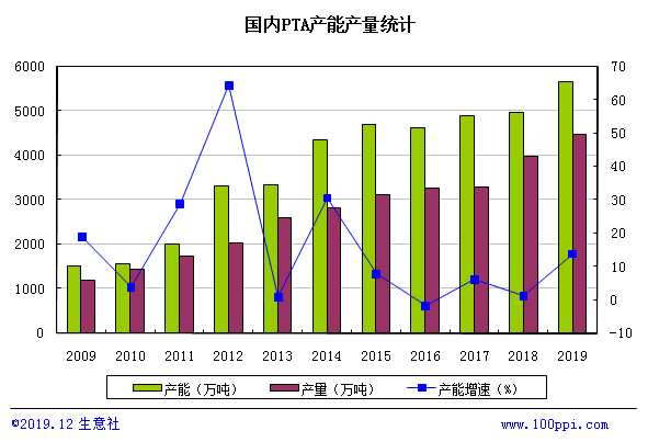 據統計,2019年PTA產能將有690萬噸新增,增速高達14%。2019年產量預計高達4464.55萬噸,較去年同期相比增長10.64個百分點。 2468.823億美元